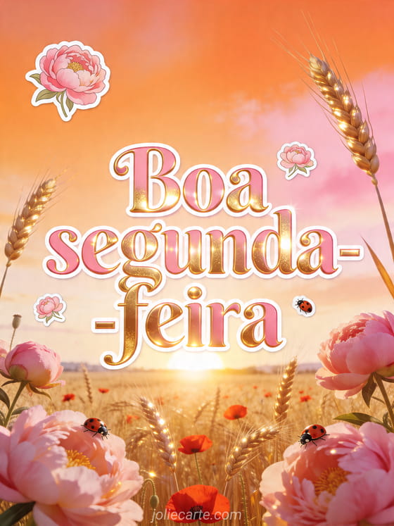 Compartilhe uma calorosa Boa segunda-feira com trigo dourado, papoulas vermelhas, peônias rosas e encantadoras joaninhas. Veja também cartão bom dia segunda-feira, mensagem boa segunda-feira e boa semana citação e cartão virtual boa segunda-feira.