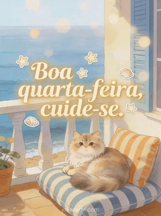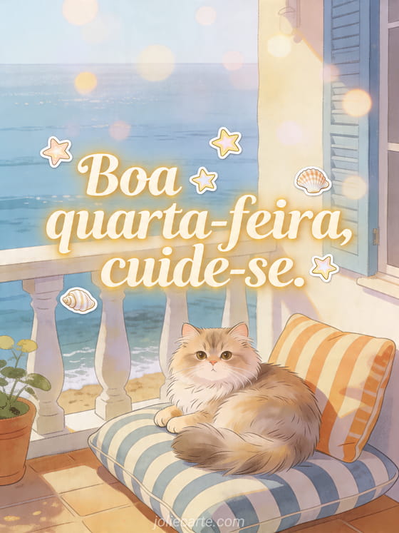 Boa quarta-feira, cuide-se. uma mensagem terna de meio de semana com clima do mar