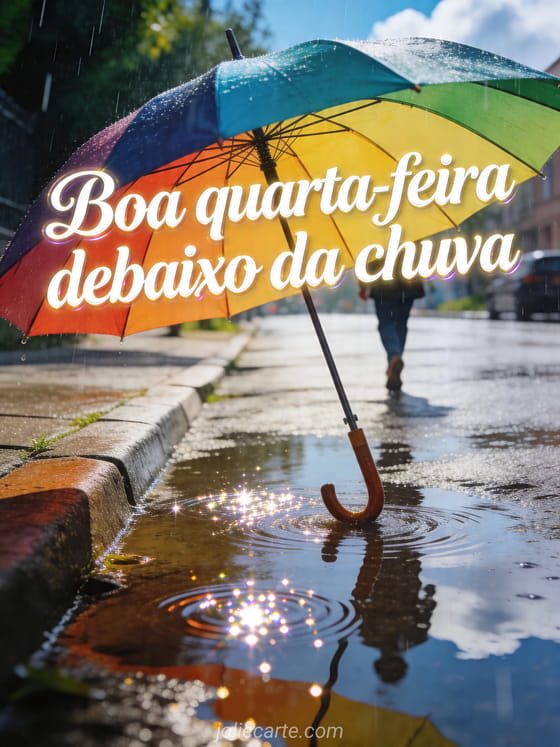 Compartilhe este cartão de quarta-feira chuvosa para mandar calma e cor. Veja também cartões boa quarta-feira, cartão grátis boa quarta-feira e imagens gif boa quarta-feira.