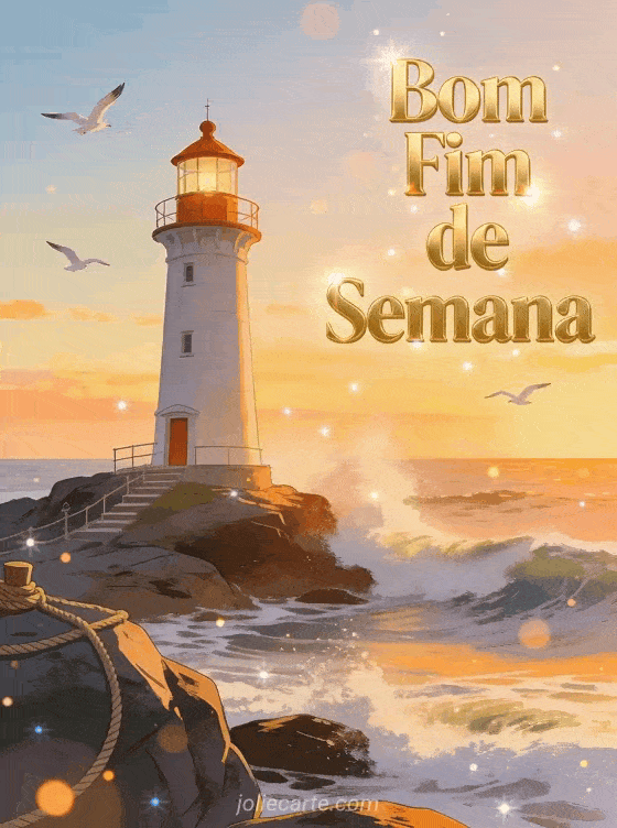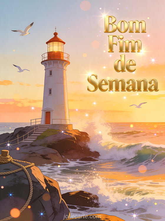 Envie uma imagem de bom fim de semana e alegre o dia de alguém. Um farol encantador numa costa rochosa ao pôr do sol cria a atmosfera perfeita. Descubra também um cartão bom fim de semana ou um bom fim de semana chuvoso humor.