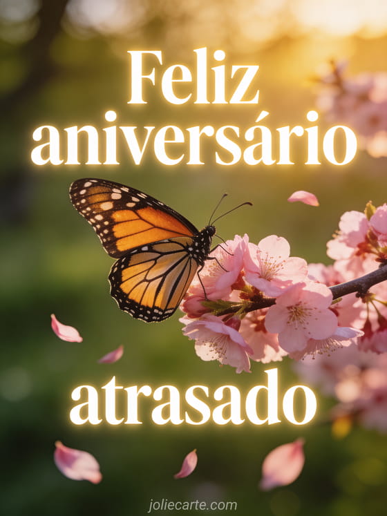 Compartilhe este cartão sereno de aniversário atrasado e envie seu carinho com delicadeza. Veja também mensagem de aniversário com atraso, imagem aniversário atrasado ou desejar feliz aniversário com atraso.