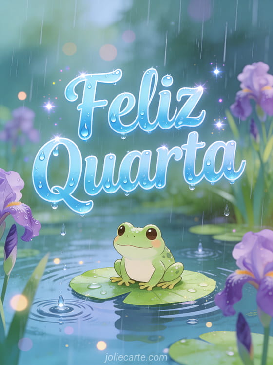 Compartilhe uma tranquila quarta-feira chuvosa com esse adorável cartão de sapo em um nenúfar. Descubra também um cartão feliz quarta cavalos ou um cartão boa quarta-feira eu te amo.