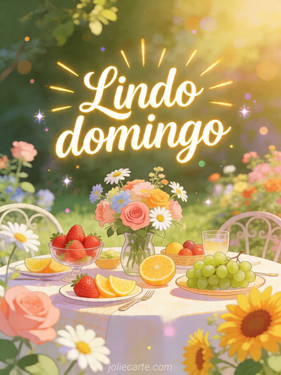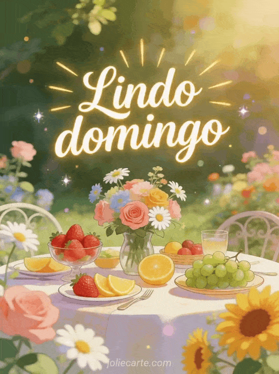 Compartilhe um lindo domingo com este cartão de brunch ao ar livre cheio de frescor e flores. Veja também mensagem de bom domingo, bom dia feliz domingo gif animado ou feliz domingo chuva.