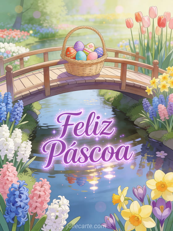 Envie um lindo cartão de Páscoa com jacinto, narciso e tulipa em Keukenhof. Descubra também um cartão virtual Páscoa ou um texto cartão felicitações Páscoa.