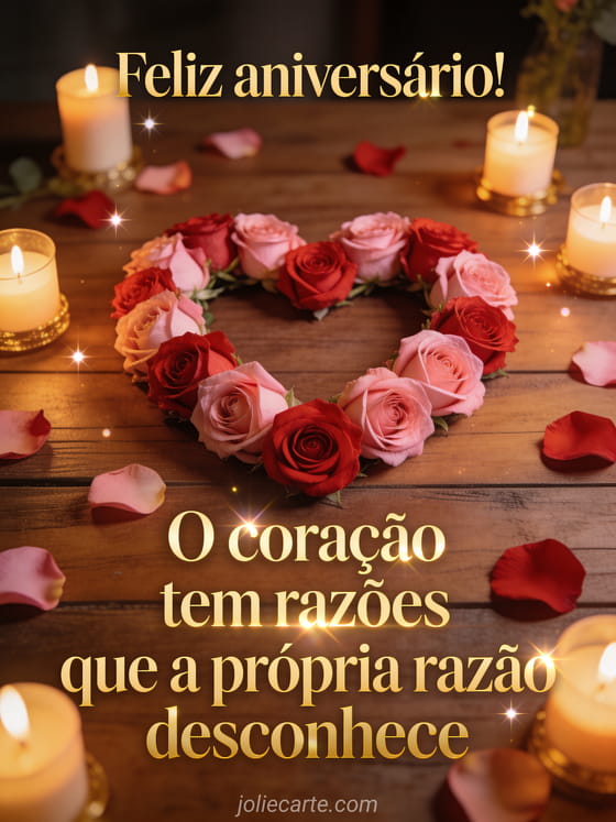 Feliz aniversário! O coração tem razões que a própria razão desconhece uma mensagem de aniversário carinhosa e íntima