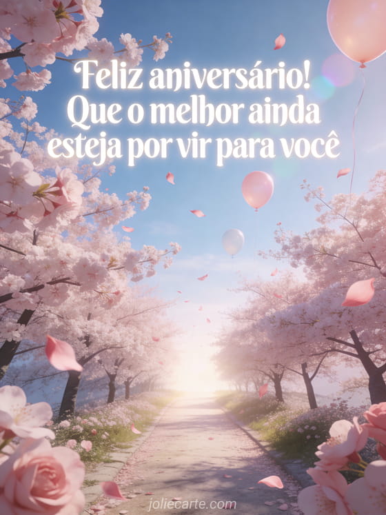 Envie uma bela mensagem curta de feliz aniversário com uma paisagem de cerejeiras. Descubra também um cartão frase curta de aniversário ou um cartão vida sonho amor.
