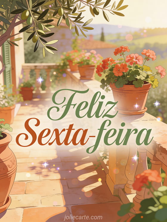Mensagem de feliz sexta-feira uma alegre mensagem de sexta-feira com varanda mediterrânea