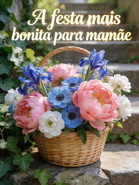 Celebre mamãe com este lindo cartão fotorrealista com uma cesta de flores do jardim à luz da manhã. Veja também um cartão dia das mães ou bom dia feliz dia das mães.