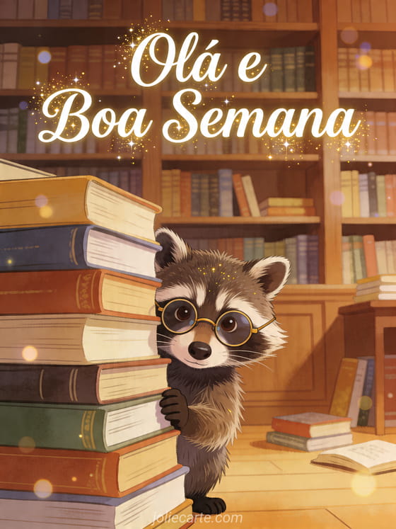 Compartilhe um divertido Olá e boa semana com este cartão grátis que mostra um guaxinim travesso com pequenos óculos redondos espiando atrás de uma pilha de livros. Você também pode descobrir engraçado boa semana, olá boa semana a todos ou imagem olá e boa semana.