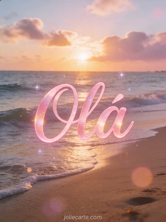 Compartilhe este tranquilo cartão de olá com um lindo amanhecer no oceano, ondas suaves e a primeira luz dourada do dia. Você também pode descobrir mande um oi, olá e olá mamãe.