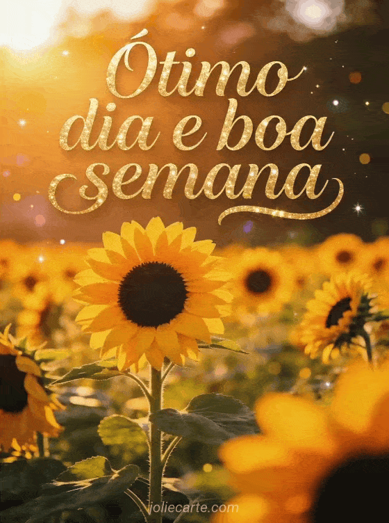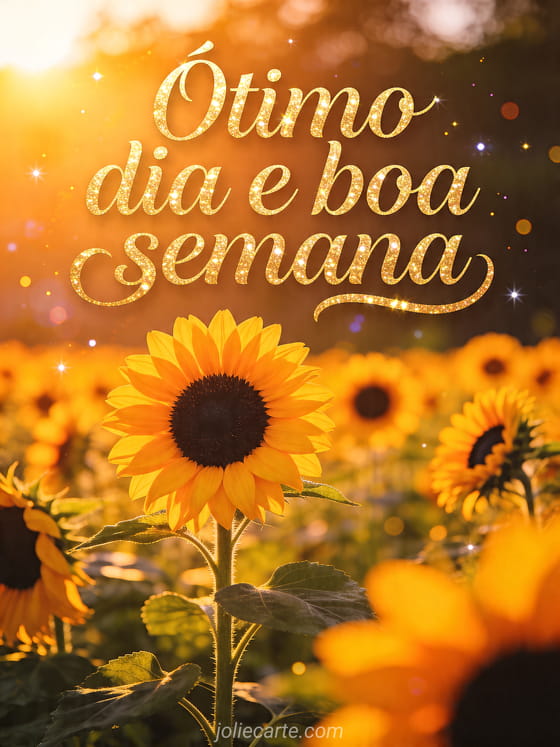 Compartilhe um desejo luminoso de ótimo dia e boa semana com este ensolarado cartão de girassóis. Veja também semana ensolarada, citação boa semana ou bom dia boa semana.