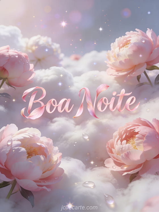 Encontre as palavras de amor perfeitas para dizer boa noite com este lindo cartão grátis. Uma cama sonhadora de peônias rosa e brancas com gotinhas de orvalho refletindo a luz das estrelas, para uma verdadeira boa noite romântica e etérea. Descubra também um cartão boa noite meu querido mensagem de amor ou um cartão boa noite amor da minha vida.