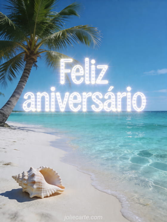 Compartilhe um feliz aniversário iluminado com este cartão grátis de praia e leve um clima tropical e relaxante para o dia especial. Veja também feliz aniversário grátis, feliz aniversário gato ou feliz aniversário animais.
