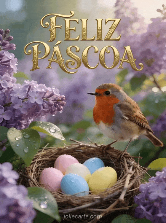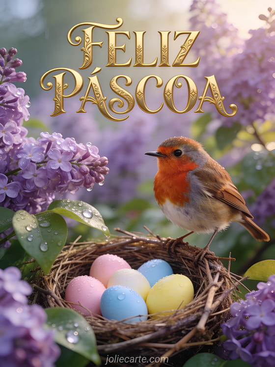 Compartilhe a magia da Páscoa com este terno cartão gratuito com um pintarroxo e flores de primavera. Descubra também gifs de Páscoa ou imagens feliz Páscoa.