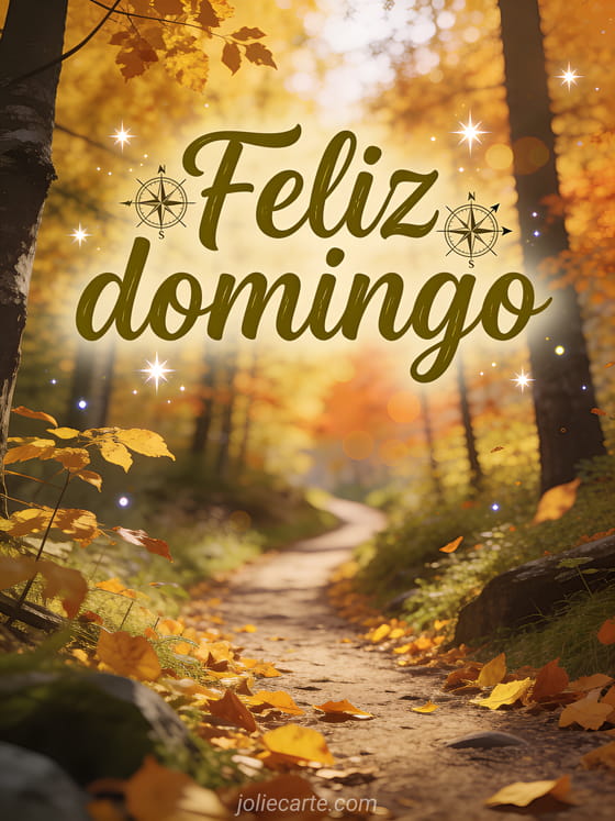 Compartilhe uma saudação fresca de domingo com uma trilha na floresta de outono, folhas douradas e um clima de aventura tranquila. Você também pode enviar ótimo domingo beijos ou bom domingo gifs animados gif.