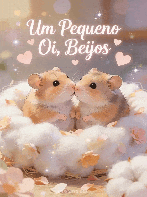 Envie este adorável pequeno oi com beijos para alegrar o dia de alguém. Dois hamsters fofos se tocam com os focinhos em um ninho aconchegante. Descubra também um cartão oi amarelo ou um cartão oi corujas.