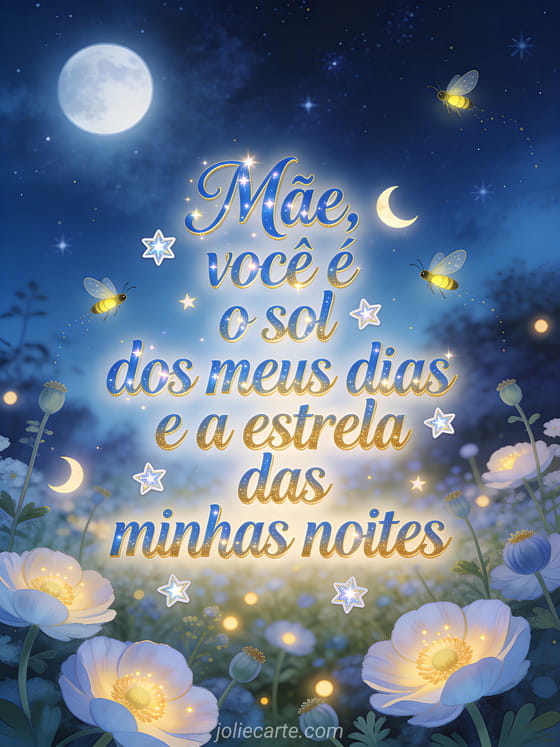 Mãe, você é o sol dos meus dias e a estrela das minhas noites Uma mensagem carinhosa para o Dia das Mães.