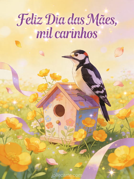 Compartilhe um cartão de poesia sobre o Dia das Mães com luz de primavera, flores e muito carinho. Veja também uma imagem de Dia das Mães, votos dia das mães para minha filha ou dia das mães caixa de palavras doces.