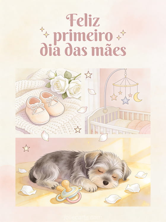 Compartilhe este cartão delicado de primeiro Dia das Mães para marcar um momento inesquecível. Você também pode descobrir cartão dia das mães animado grátis, poema para minha filha para o dia das mães e feliz dia das mães a todas as mães.