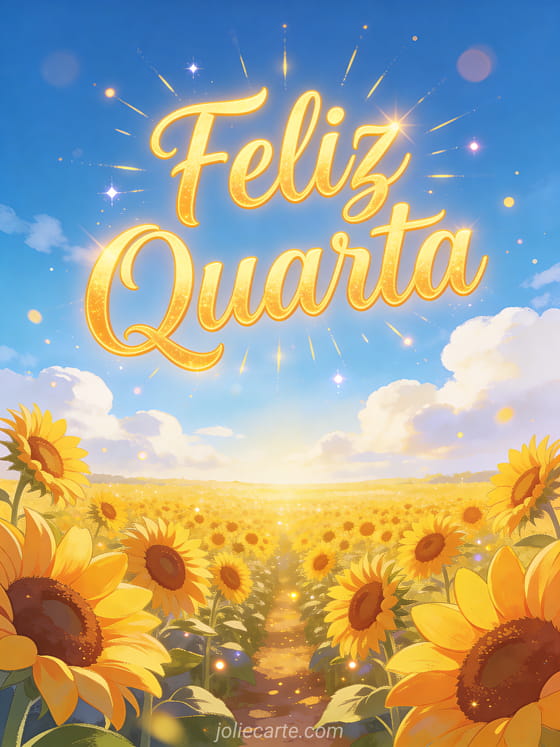 Ilumine a quarta-feira de alguém com esse radiante cartão do campo de girassóis. Descubra também um cartão fotos feliz quarta ou um cartão feliz quarta janeiro.
