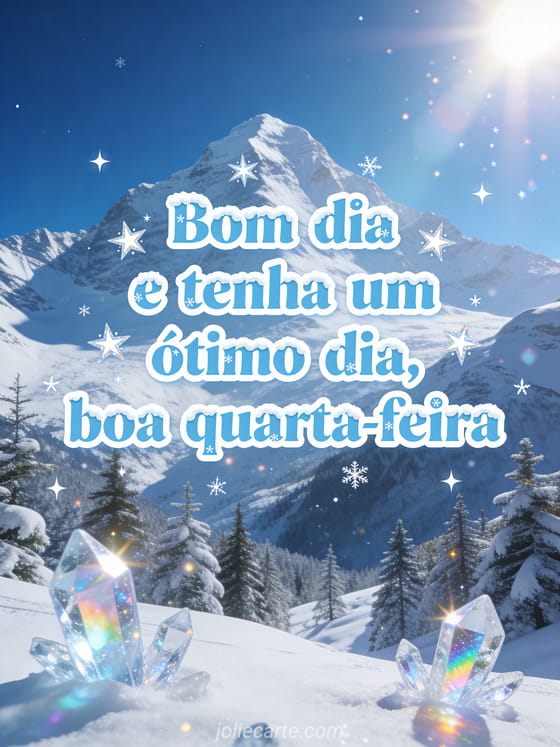 Deseje a alguém um bom dia e uma linda quarta-feira com este impressionante cartão de inspiração alpina. Você também pode gostar de um boa quarta-feira e bom dia gif ou de uma mensagem feliz quarta-feira para mais saudações alegres de quarta.