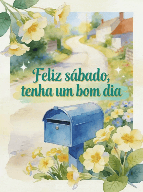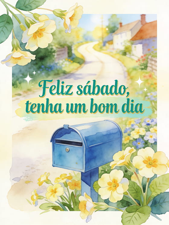 Envie uma saudação acolhedora de feliz sábado com letras esmeralda frescas, destaques dourados suaves, uma caixa de correio azul, um caminho sinuoso de vilarejo ensolarado e prímulas floridas cruzando a borda. Você também pode compartilhar feliz sábado beijos imagens, feliz sábado imagens de inverno ou bom dia e feliz sábado gifs.