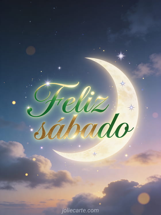 Compartilhe uma saudação tranquila de feliz sábado com uma lua crescente delicada, estrelas e nuvens suaves em um céu de crepúsculo com luz suave. Veja também um gif de café feliz sábado, bom sábado gifs ou feliz sábado de aleluia.