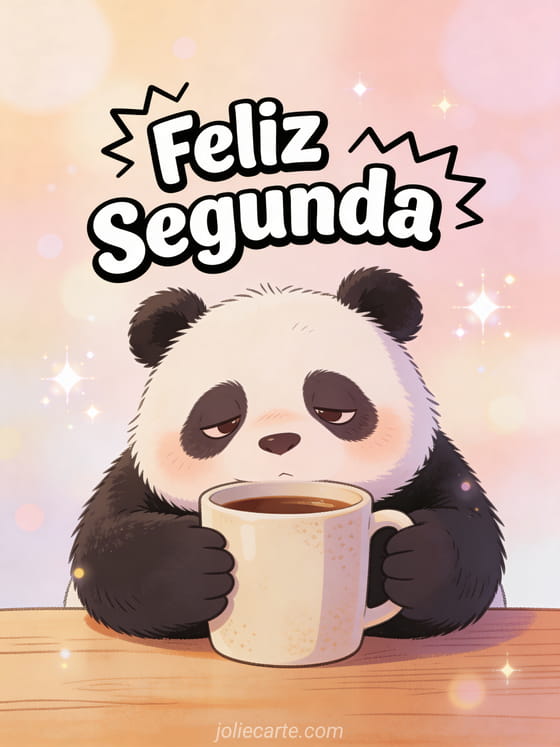 Comece a semana com uma risada enviando este divertido cartão de feliz segunda. Um panda cansado abraça uma xícara de café em uma cena de humor muito identificável. Descubra também um cartão gif de feliz segunda ou um cartão de feliz segunda.