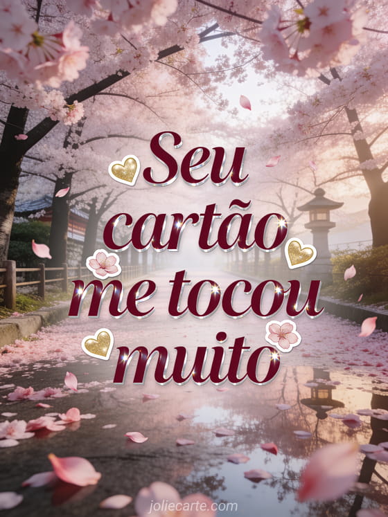 Seu cartão me tocou muito um cartao emocionante de agradecimento com cerejeiras em flor
