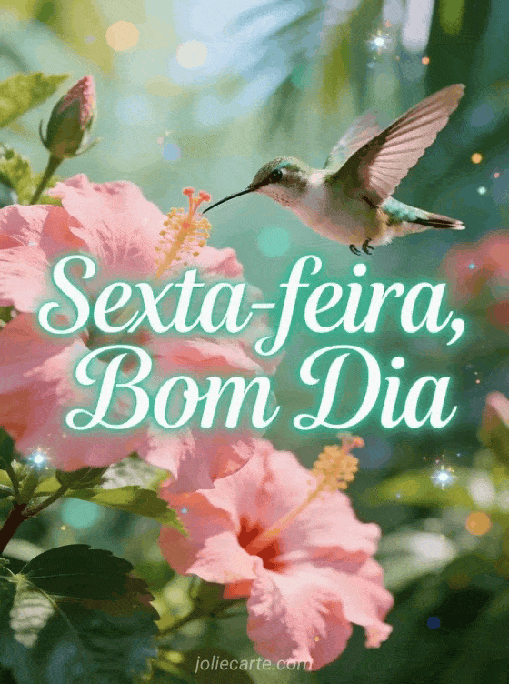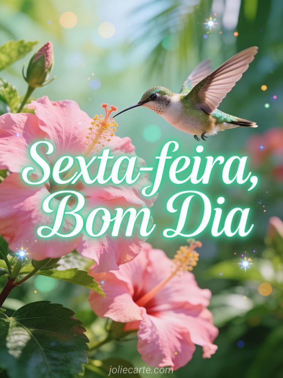 Sexta-feira bom dia um elegante cumprimento de sexta-feira com um beija-flor e flores de hibisco