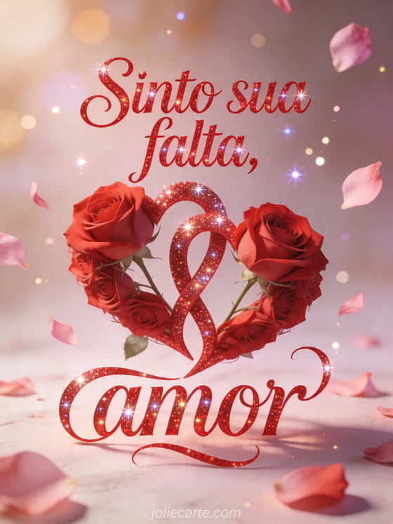 Compartilhe sua saudade com este cartão romântico e apaixonado formado por rosas entrelaçadas. Veja também sinto sua falta demais, citação engraçada sinto sua falta ou mensagem sinto sua falta meu amor.