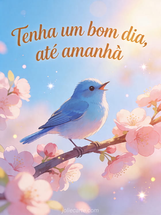 Compartilhe este lindo cartão de tenha um bom dia, até amanhã com um passarinho cantando, galhos floridos e sol suave de primavera. Você também pode descobrir tenha um bom dia e até amanhã, imagem boa noite e até amanhã e boa noite até amanhã frase.
