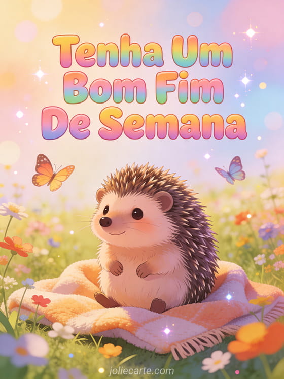 Deseje a alguém um lindo fim de semana com este adorável cartão com ouriço e campina de flores. Descubra também um cartão tenha um ótimo fim de semana ou um cartão gif bom fim de semana humor.