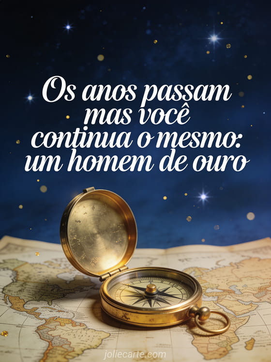 Preste homenagem a um homem de ouro com este elegante cartão com uma bússola dourada antiga sobre um mapa vintage. Descubra também um cartão de aniversário grátis homem ou um foto feliz aniversário homem.