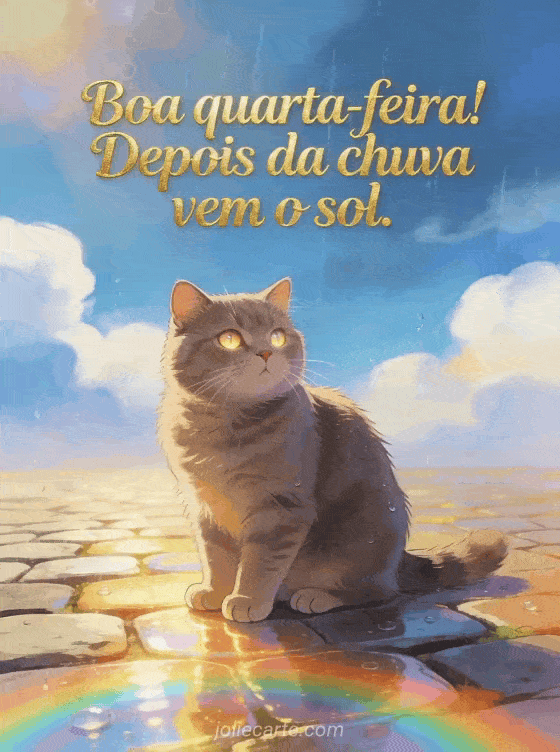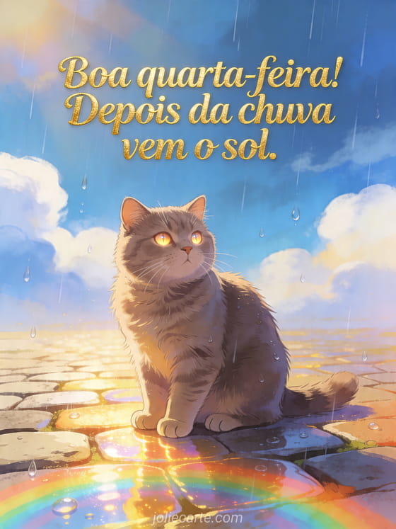 Boa quarta-feira! Depois da chuva vem o sol. uma mensagem otimista de meio de semana cheia de luz