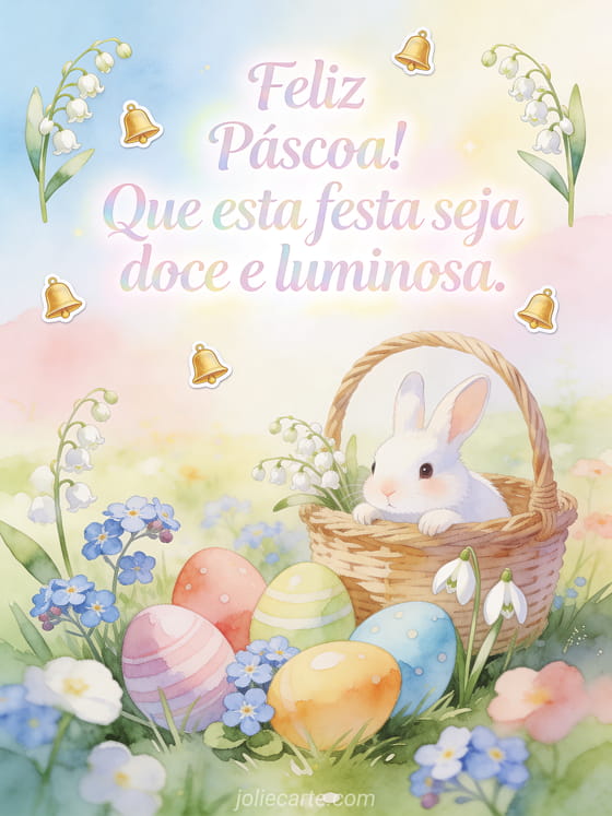 Envie este lindo cartão de Páscoa com um texto terno e cheio de luz. Descubra também uma citação alegre de Páscoa ou uma mensagem de Páscoa.