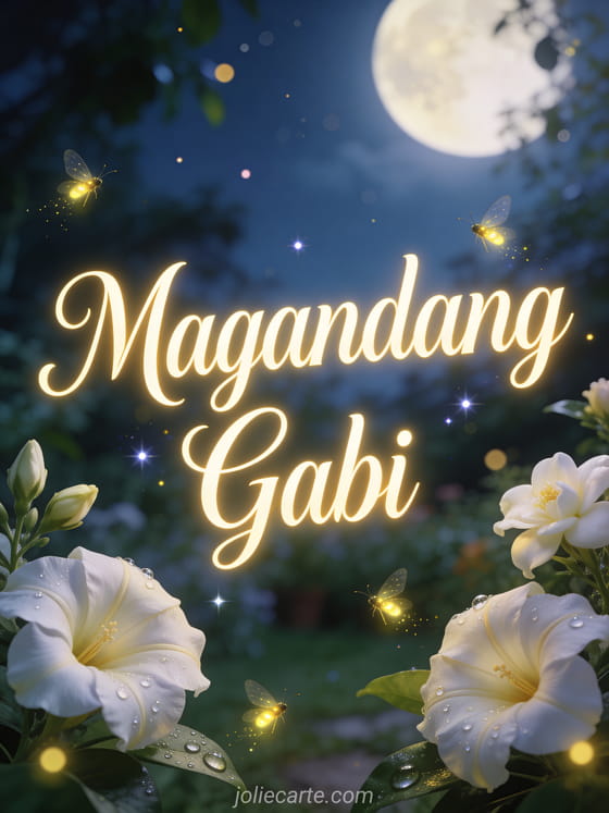 Batiin ng matamis na panaginip gamit ang kahanga-hangang card na may mga bulaklak sa gabi at alitaptap sa hardin. Tuklasin din ang isang card na magandang gabi at magandang tulog o isang card na magandang gabi matulog ka nang mahimbing.