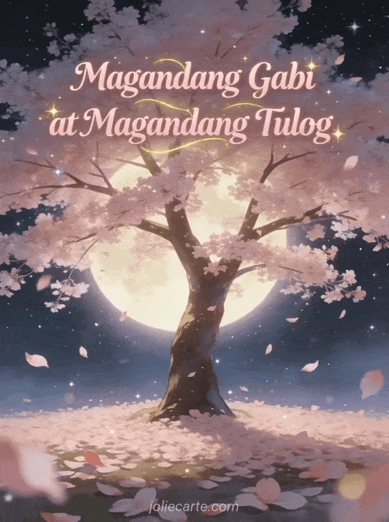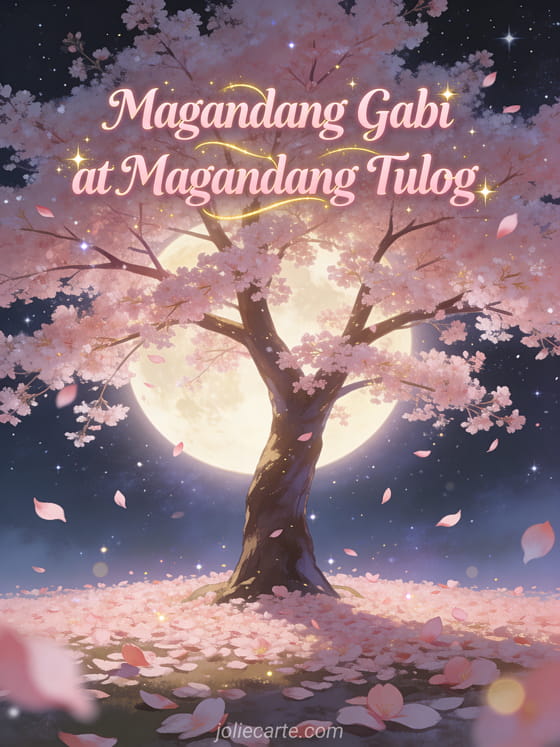Magandang Gabi at Magandang Tulog isang romantikong bati sa ilalim ng mga cherry blossom