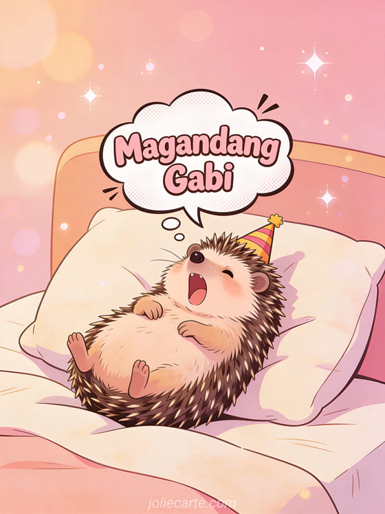 Batiin ang iyong mga kaibigan ng magandang gabi gamit ang nakakatuwang card na ito na may hedgehog na nakasuot ng party hat.