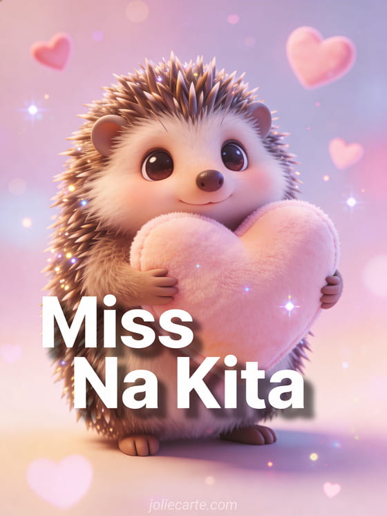 Magpadala ng adorable na greeting card na may cute na 3D hedgehog na yakap ang isang puso na unan na may malalaking emosyonal na mata sa isang malambot na pastel na background. Tuklasin din ang card sobrang miss na kita mahal ko o ang card mahal kita miss na kita.
