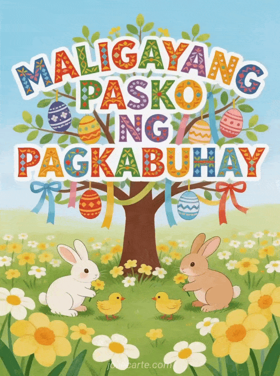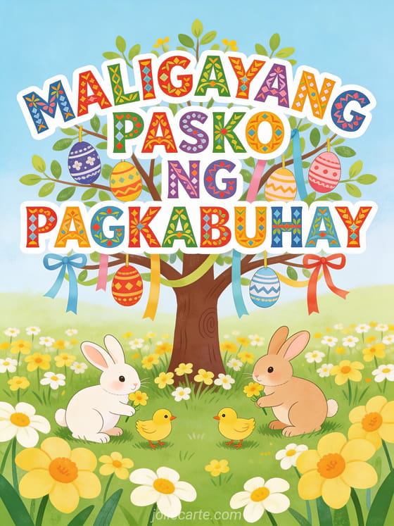 Magpadala ng masayang pagbati sa Pasko ng Pagkabuhay gamit ang magandang folk art card na ito. Tuklasin din ang larawan ng Pasko ng Pagkabuhay at ipagdiwang ang pista nang may kagalakan.