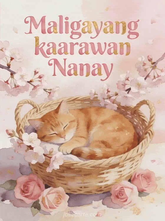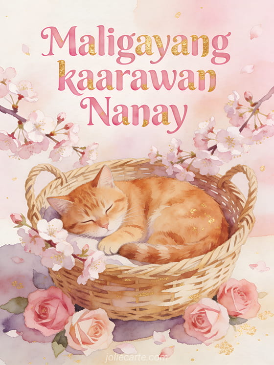 Maligayang kaarawan Nanay isang malambing na pagbati ng kaarawan na may matamis na pulang pusa