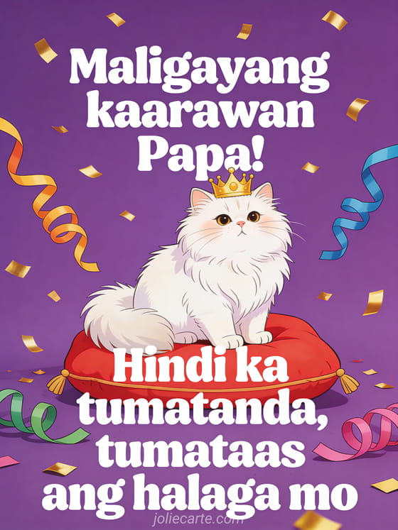 Maligayang kaarawan Papa! Hindi ka tumatanda, tumataas ang halaga mo isang nakakatawa at maalab na pagbati ng kaarawan para sa papa
