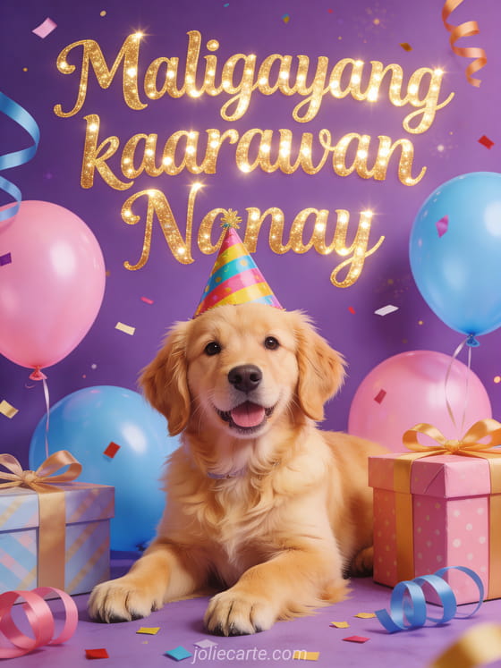 Maligayang kaarawan Nanay isang masayang pagdiriwang ng kaarawan na may adorable golden retriever