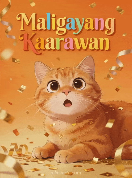 Pasayahin ang kaarawan ng isang espesyal na tao gamit ang kaibig-ibig na card na may nagugulat na pulang pusa at gintong confetti. Tuklasin din ang isang card na may mensahe ng kaarawan o isang card na may champagne para sa kaarawan.