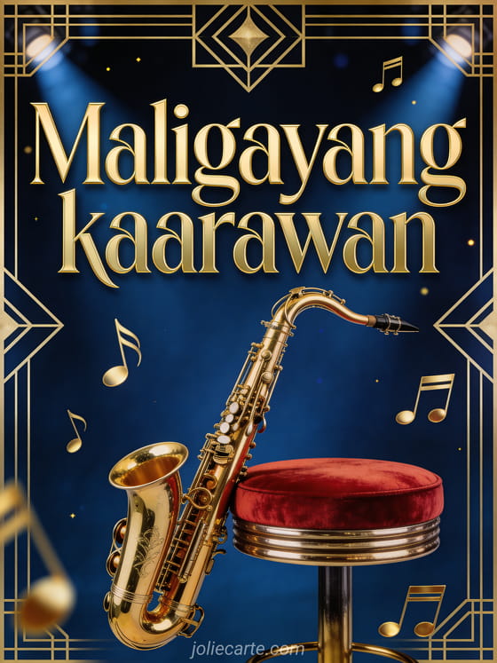 Ipagdiwang ang kaarawan nang may istilo gamit ang eleganteng card na may jazz club na kapaligiran. Tingnan din ang nakakatawang kaarawan lalaki card libre, isang kaarawan lalaki teksto o isang kaarawan card para sa lalaki.