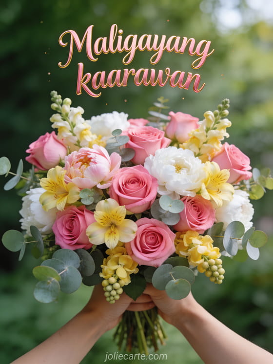 Magpadala ng masayang pagbati sa kaarawan na may maringal na bulaklak ng rosas at peony para pasayahin ang kanyang araw. Tuklasin din ang isang ecard kaarawan babae, isang libreng gif kaarawan babae o isang nakakatawang gif kaarawan babae.