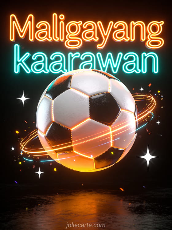 Ipadala ang dinamikong pagbati ng kaarawan na ito na may nagniningning na football upang ipagdiwang ang espesyal na araw ng isang sports fan. Tuklasin din ang larawan ng kaarawan para sa tinedyer na babae o ang kard ng kaarawan para sa tinedyer na babae o ang libreng kard ng kaarawan para sa tinedyer na lalaki.
