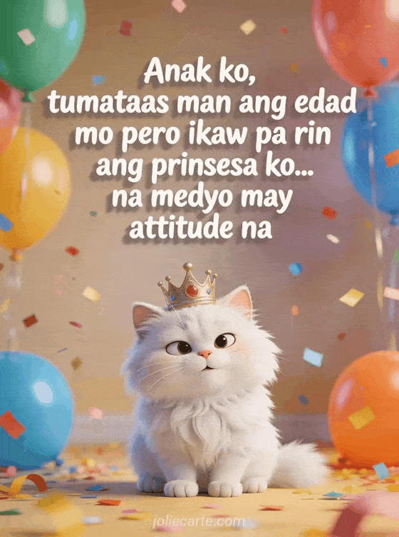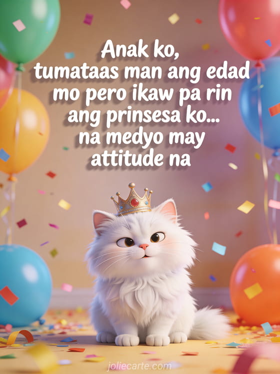 Anak ko, tumataas man ang edad mo pero ikaw pa rin ang prinsesa ko... na medyo may attitude na isang nakakatawang birthday card para sa iyong anak