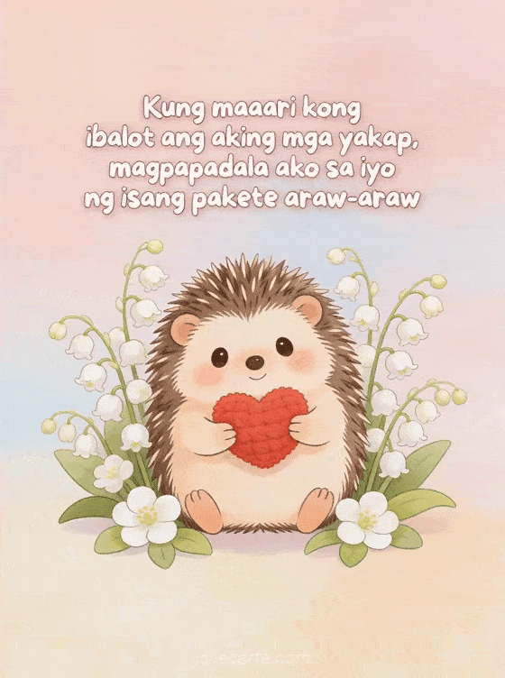 Kung maaari kong ibalot ang mga yakap, ipapadala ko araw-araw isang malambot na mensahe ng pag-ibig na ipinadala sa kabila ng layo